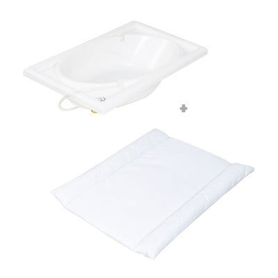 Pehmelt polsterdatud muutmisalus (43 x 78 cm), millel on turvaservad ja pestav PU-pind, mis on beebi nahale õrnalt mõjuv. Vann võimaldab mugavat suplemist, mille järel saab beebi kohe üle viia muutuvale alusele. Vett saab hõlpsasti ära lasta praktilise äravooluvooliku abil, ilma et oleks vaja vanni kaasas kanda. Vahetamislaual on ka kaks riidest hoiukappi, mis pakuvad piisavalt ruumi mähkmete, kosmeetika ja muude oluliste asjade hoidmiseks.