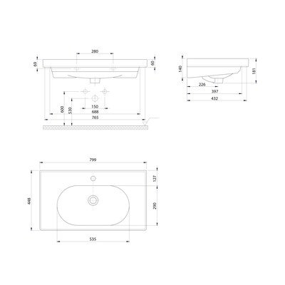 Valge keraamiline valamu 80x45 cm Brand - Sapho