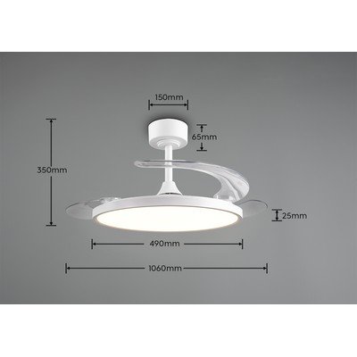 LEDTaimer/kaugjuhtimispult/dimmerdatav/ventilaatorigaMetallValgeØ 106,5 cmKõrgus 35 cm