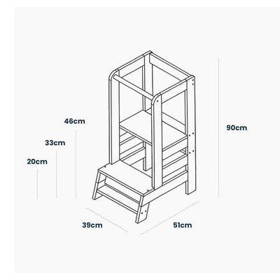 Meowbaby Montessori õppetorn on praktiline tööriist, mis võimaldab lastel köögis turvaliselt osaleda. Tänu sellele ulatuvad nad mugavalt joone, kraanikausi või lauani ning osalevad aktiivselt toidu valmistamisel, laua katmisel või nõude pesemisel. Torni stabiilne puitkonstruktsioon on loodud maksimaalse ohutuse tagamiseks ja laste iseseisvuse toetamiseks. Platvormi saab hõlpsalt reguleerida kolmele erinevale kõrgusele - 20 cm, 33 cm ja 46 cm põrandast, ilma tööriistu kasutamata. See toode on CE-sertifitseeritud ja soovitatav lastele alates 2. eluaastast, mis tagab selle ohutuse ja töökindluse. Tänu minimalistlikule disainile sobib see ka igasse majapidamisse.