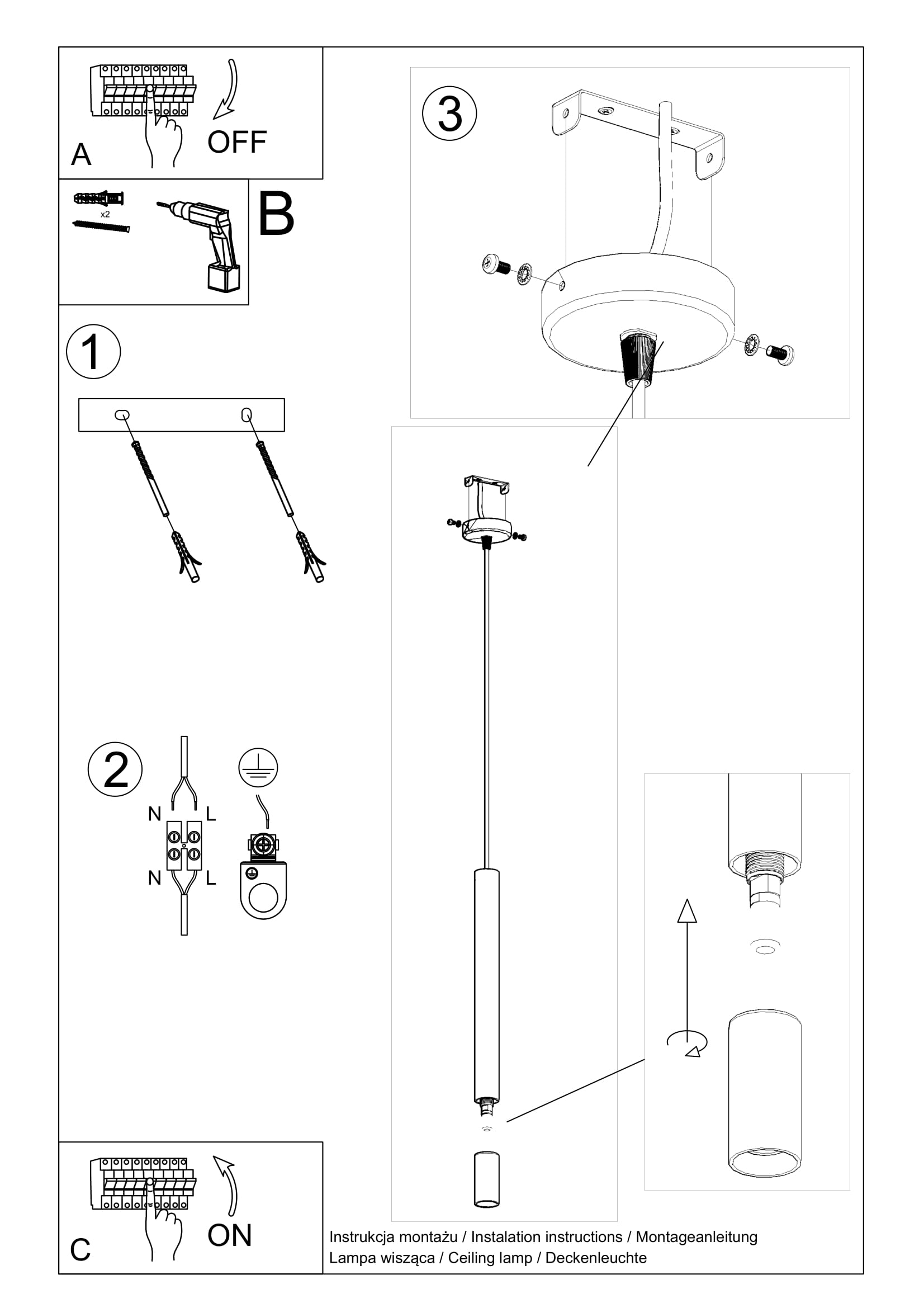 Valge metallist rippvalgusti ø 8 cm Vittoria - Sollux