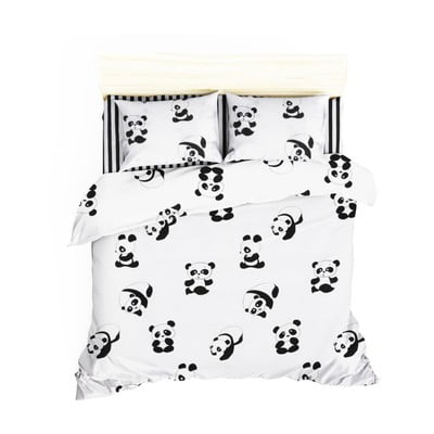Valge/must puuvillane voodikatte ja padjakatete komplekt 200x235 cm Panda – Mijolnir