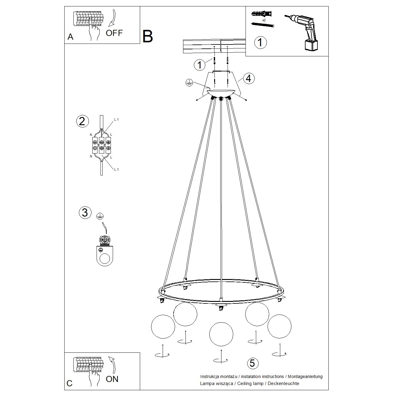 Valge/must rippvalgusti klaasist varjuga Umerta - Sollux