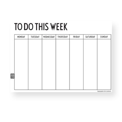 Design Letters'i elegantse nädalakava abil saate oma aega kindlasti maksimaalselt ära kasutada ega unusta midagi olulist. Niipea, kui jõuad pühapäeva lõppu, saad lehe lahti rebida ja alustada uut nädalat.