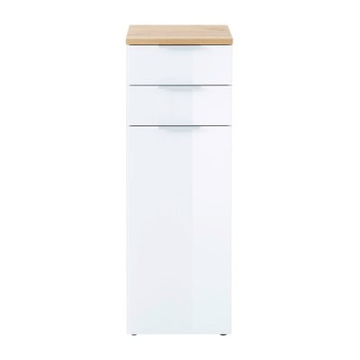 Valge naturaalne kõrge vannitoakapp tammepuust 39x112 cm Pescara - Germania