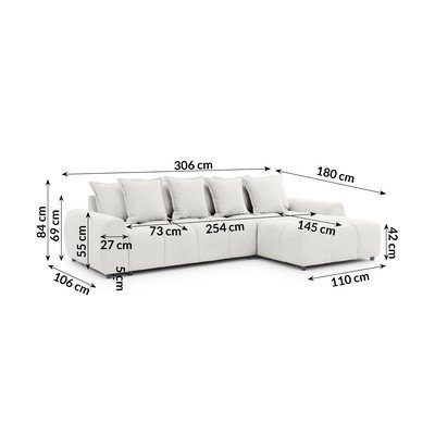 Valge nurgadiivan (parem nurk) Albane - Ropez