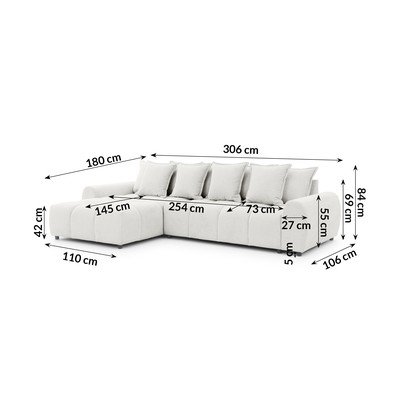 Valge nurgadiivan (vasak nurk) Albane - Ropez
