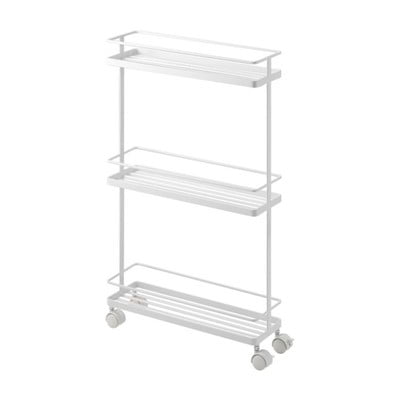 Ratastega riiul vastas minu ootustele: pole vaja vannitoa seina sisse puurida, õhuke, saab kasutada muidu kasutamata ruumi jaoks, mobiilne, "tant...