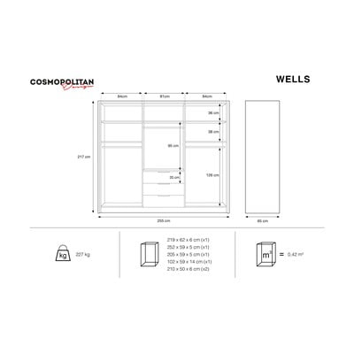 Wells'i sari toob teie interjööri glamuuri garderoobi näol. Teie riided leiavad oma koha selges sahtlite ja uste süsteemis ning teie magamistuba rikastub uue esemega.