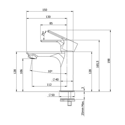 Täiendage oma valamu selle minimalistliku messingist kangiga kraaniga. See on varustatud 25 mm läbimõõduga padruniga. Lisaks leiate pakendist ka paindliku toitevooliku.