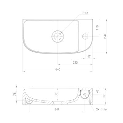 Valge väike vannitoa valamu mineraalkomposiit 44x22 cm Alga – Sapho