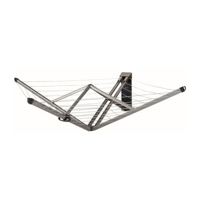 See tugeva teraskonstruktsiooniga välitingimustes kasutatav ja seinale kinnitatav kuivatusrest paistab silma eelkõige oma kompaktsuse poolest. Lahtivoldituna, mida saab teha ühe käega, pakub see kuni 24 meetrit kuivatuspinda, mis on piisav kahe masinatäie pesu jaoks. Ja kui te seda ei kasuta, saate selle lihtsalt kokku voltida ja kaitsekotti panna.