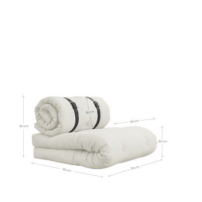 Ühest mööbliesemest saad hetkega nii voodi ühele kui ka mugava tugitooli. Buckle Up koosneb kahest madratsist, millest ülemine on kahe nahkrihmaga alumise külge kinnitatud.