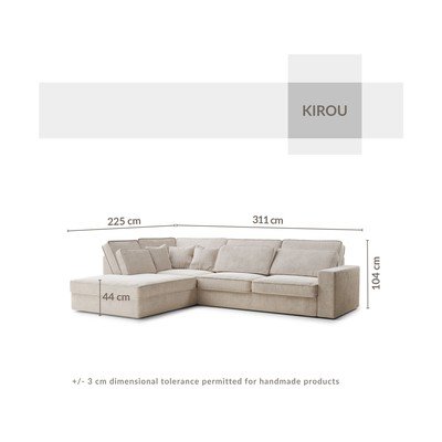 Hallikasbeež šenill-nurgadiivan (vasak nurk/L-kujuline) Kirou - Maison de Rêve
