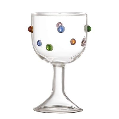 Bloomingville'i Thalia veiniklaas ühendab endas praktilisuse ja mängulise disaini. See klaas on käsitsi puhutud ja kaunistatud värviliste klaashelmestega, mis lisavad teie einestamiskogemusele lõbusa ja värvika hõngu. Klaasi maht on 250 ml.